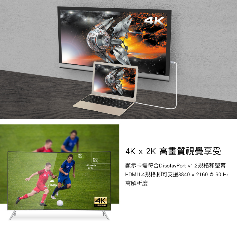 .支援最高解析度3840 x 2160 @ 60 Hz