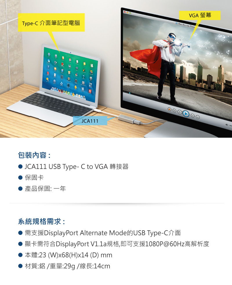 .輕鬆連接到有VGA介面的螢幕、投影機等