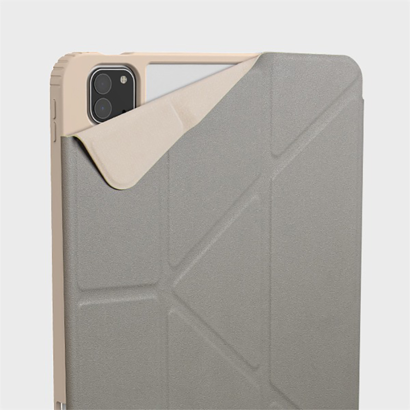 四角防撞設計與透明背板,提供平板防護並能展示原始iPad設計。