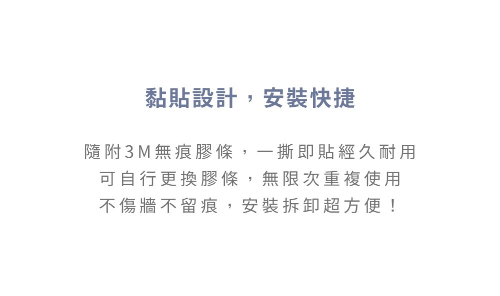 • 多款造型自由拼貼,安裝快速,不傷牆面不留痕
