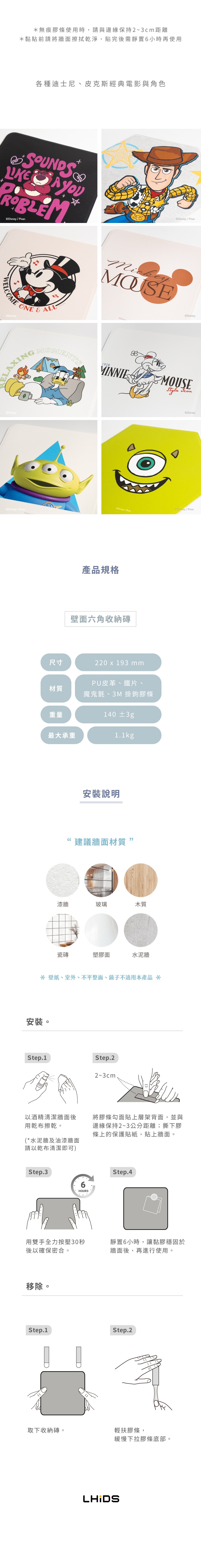 (1) 收納磚材質為鐵片,可磁吸含有磁鐵的物品;使用時請搭配含有磁鐵的物品或LHiDS磁吸配件一起使用