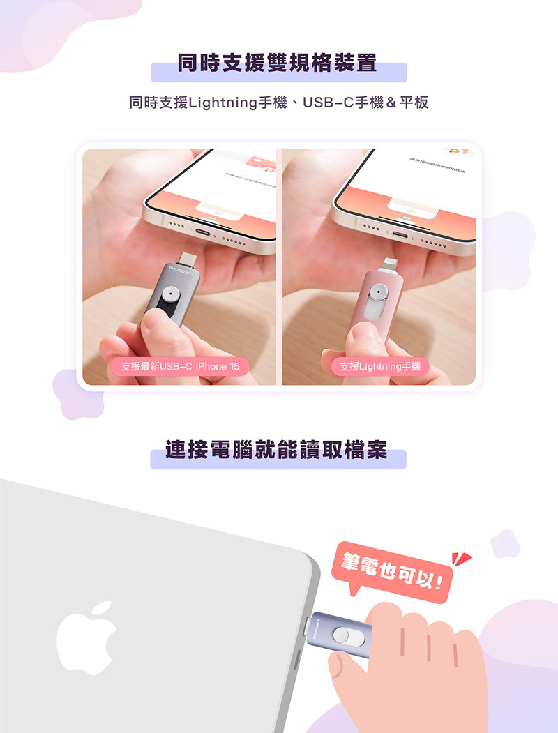 .Lightning+USB-C 雙規,資料轉移更便利