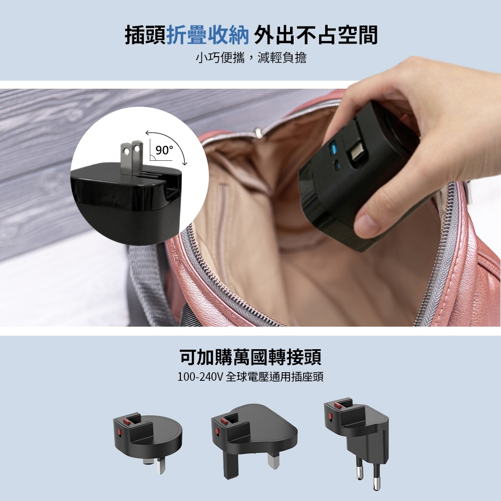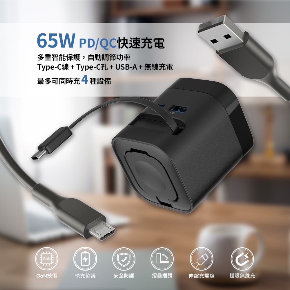 .支援PD快充,Type-C單孔最高支援 65W(MAX) PD快充