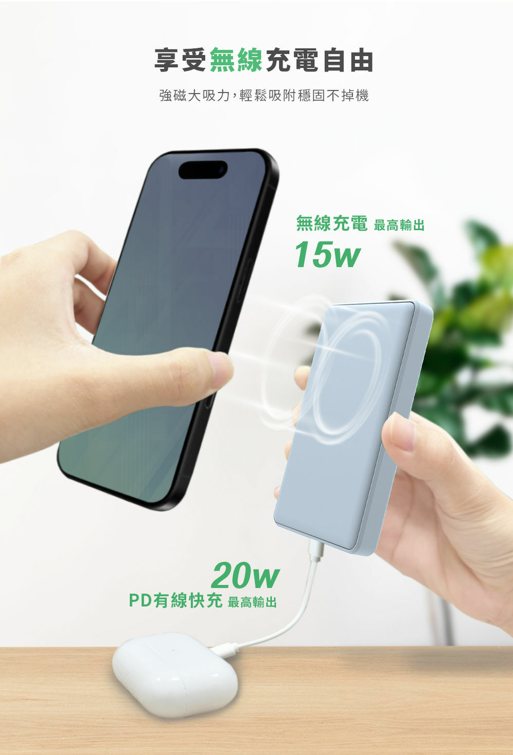 .磁吸無線充電,完美吸附手機背面