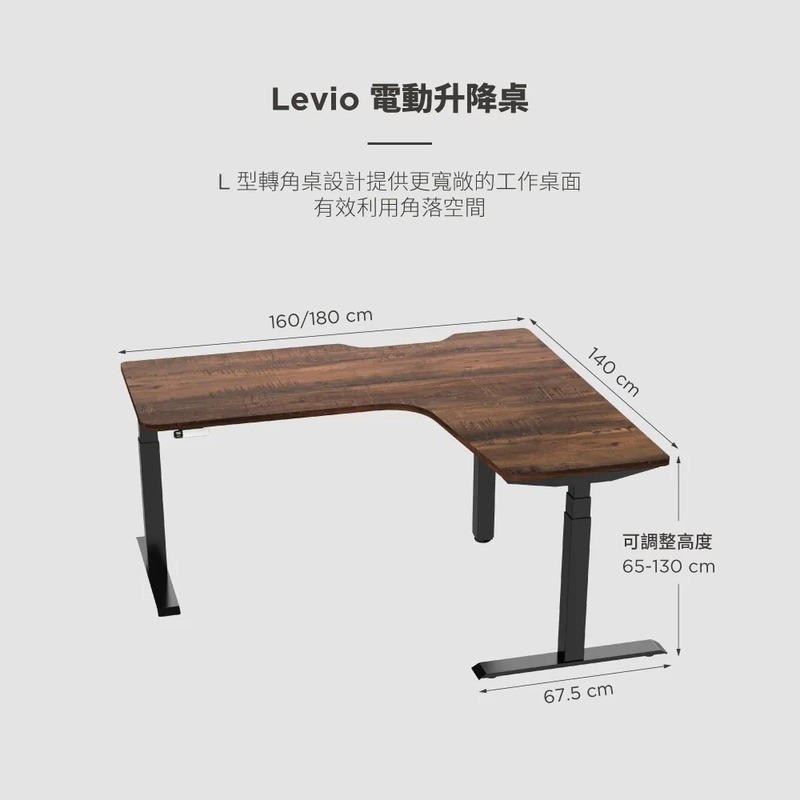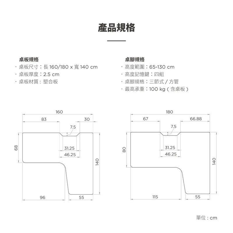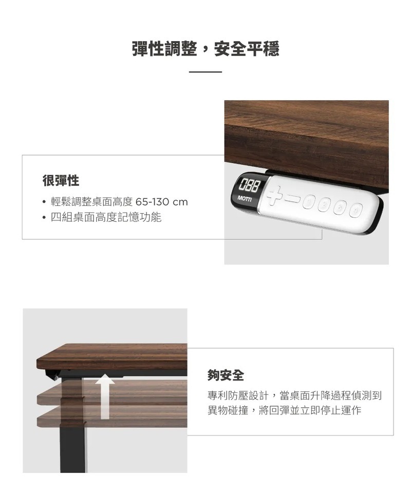 .三節式方管桌腳,更彈性的升降範圍65-130cm