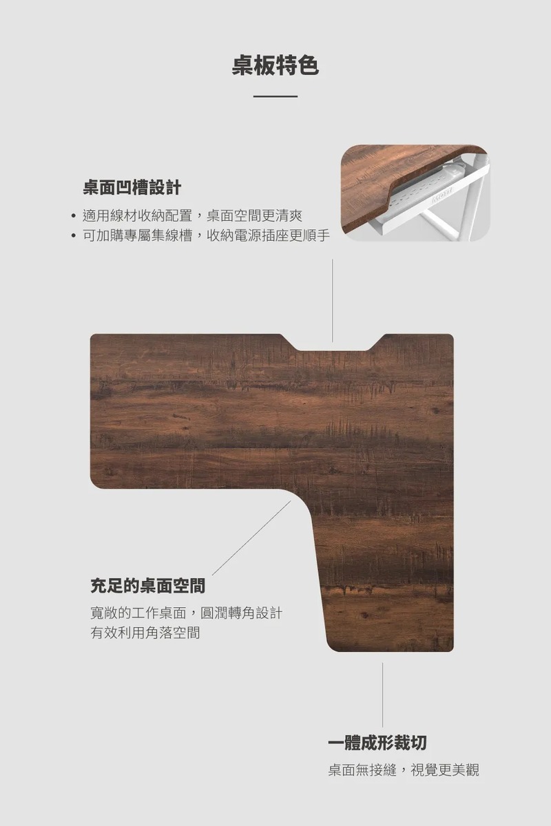 .桌板一體成形裁切,無接縫視覺更美觀