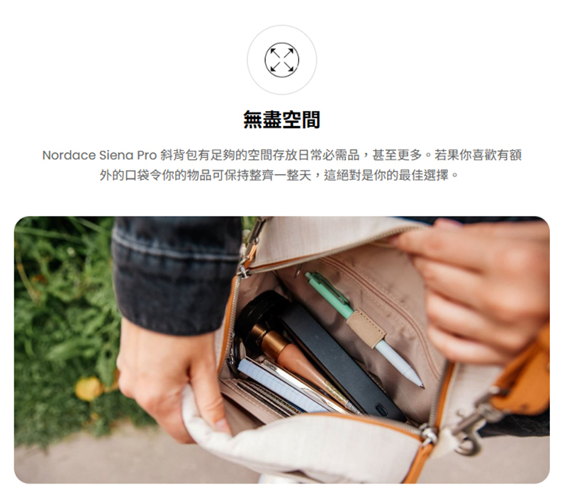 • Nordace Siena Pro 斜背包有足夠的空間存放日常必需品,甚至更多。若果你喜歡有額外的口袋令你的物品可保持整齊一整天,這絕對是你的最佳選擇。