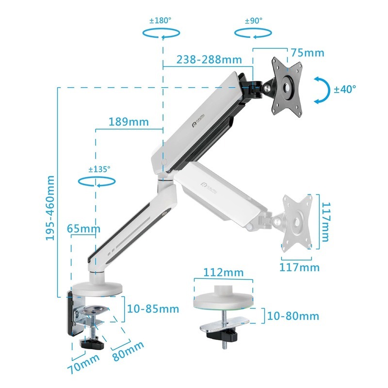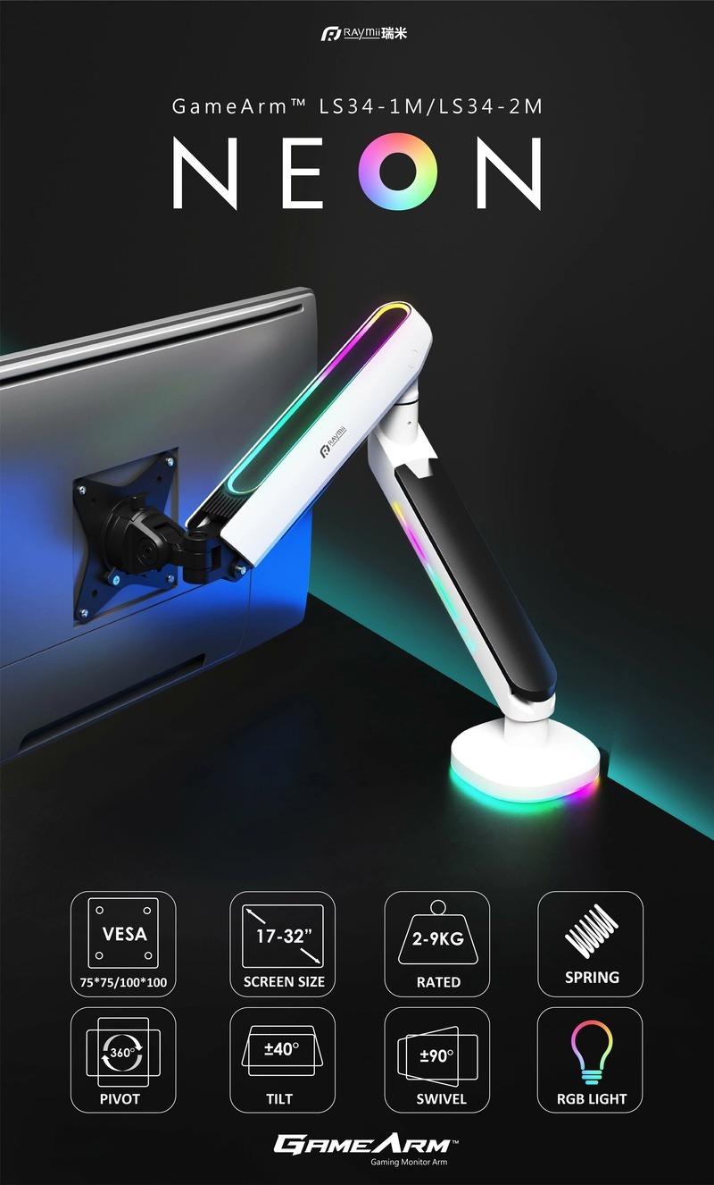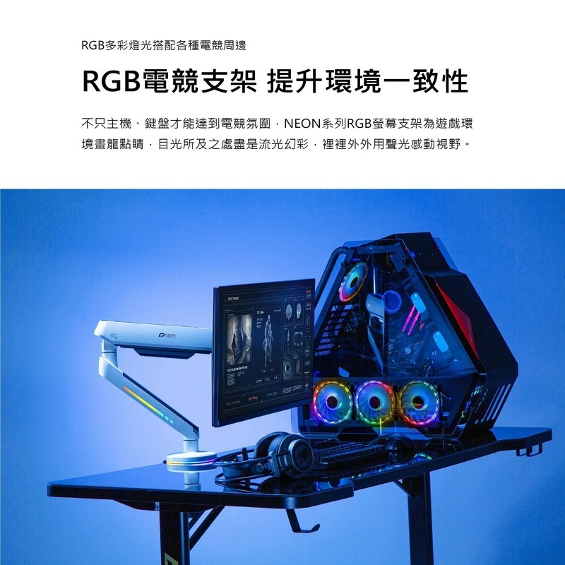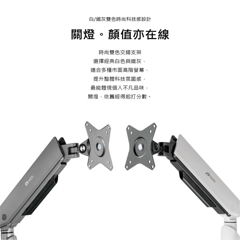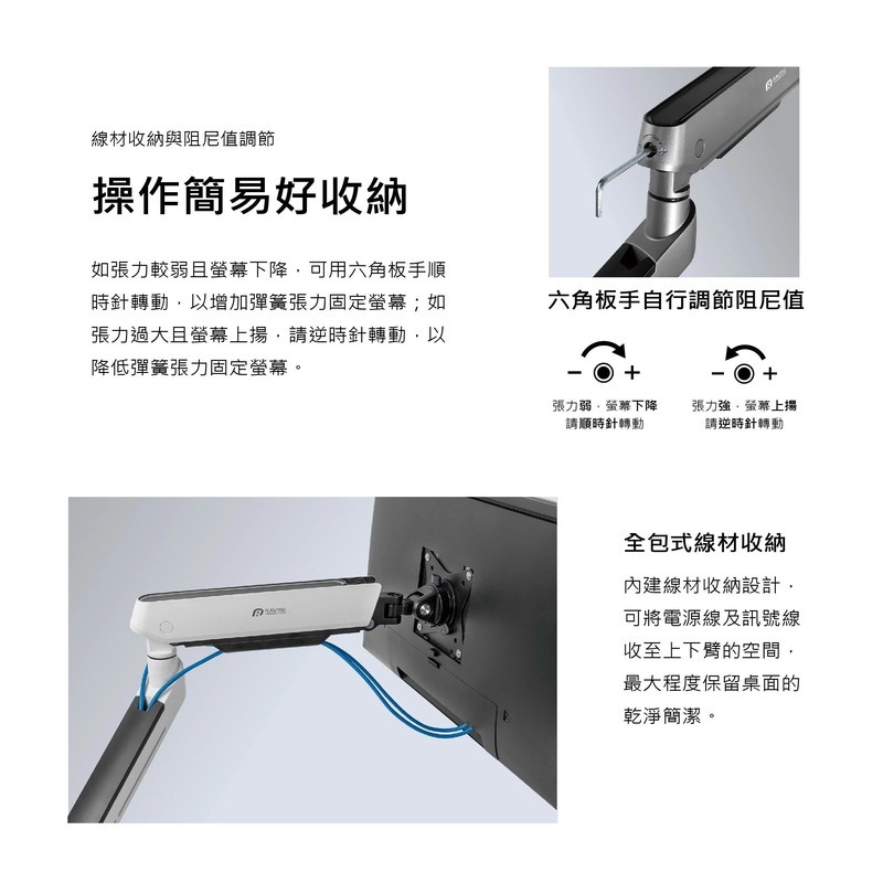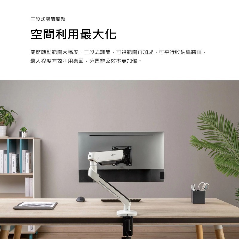 .支架臂帶有線材收納設計,維持桌面簡潔美觀