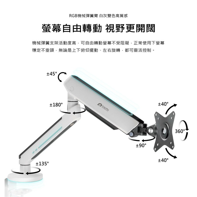 .支架臂以航太級鋁合金打造