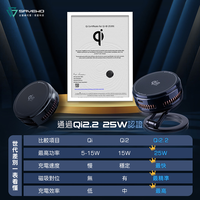 .通過 WPC 官方 Qi2.2 認證