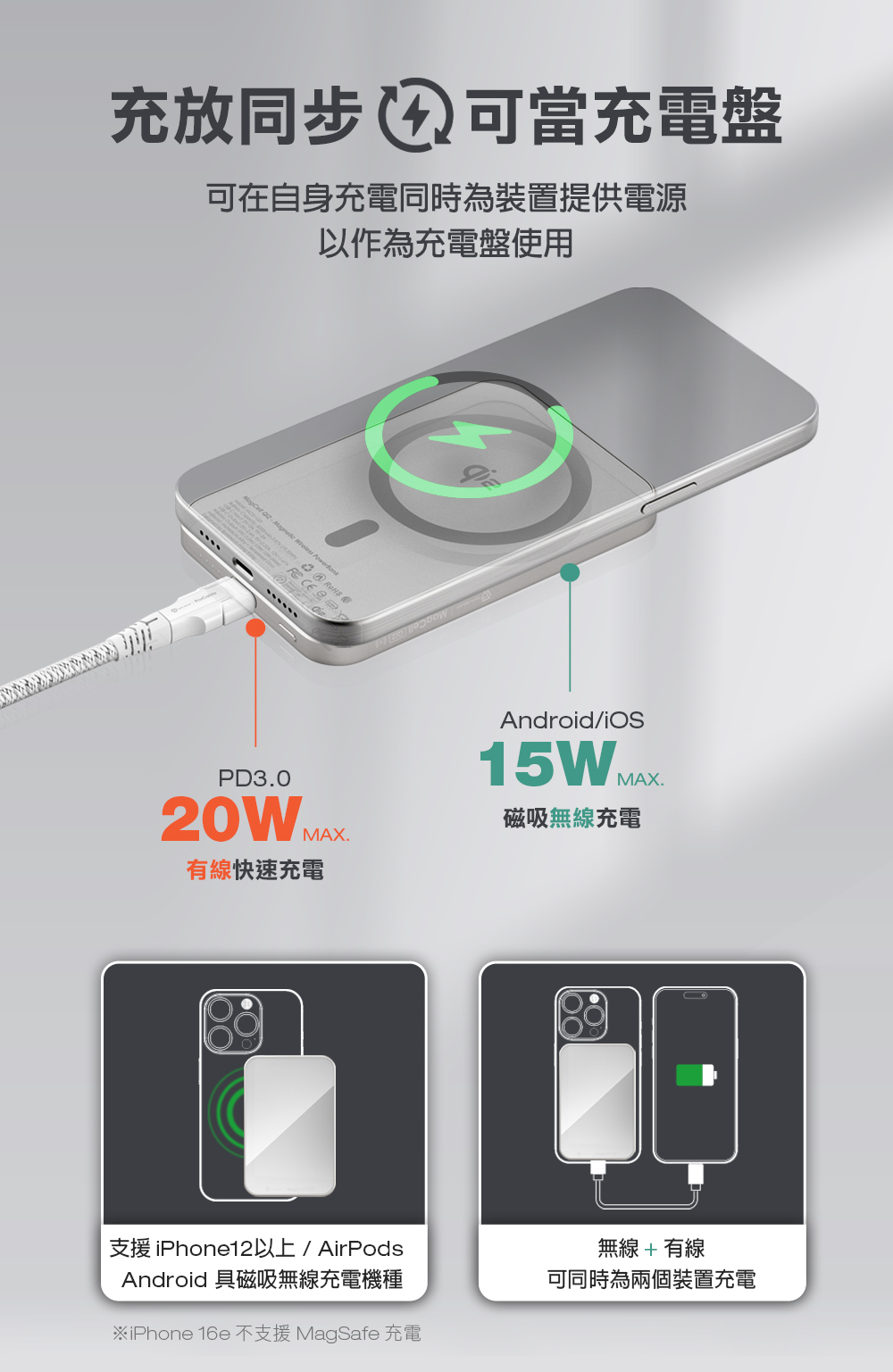 .支援充放同步, 可作為充電盤使用
