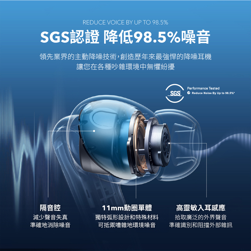 .主動降噪技術,SGS認證的98.5%降噪能力